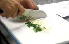 最後にちょっと火を強め、照りを出して完成。盛り付けてから小ネギを散らす |