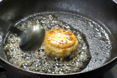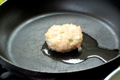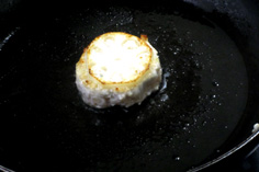 輪切りのレンコンの上に、円形に形を整えてのせる |