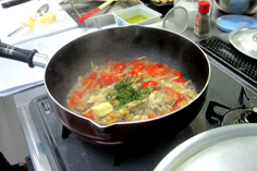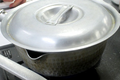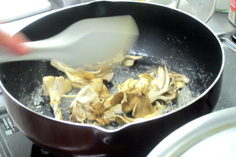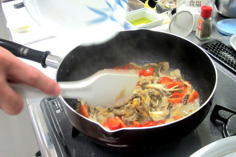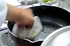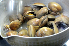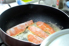 別のフライパンに、残りのアサリの汁を入れ沸かし、アサリの身とミニトマト、舞茸を入れ強火で煮つめる様に沸かし、塩・コショウで味を整える。アサリの塩気があるので注意 仕上げにバターを溶かし入れ、パセリを散らす 蒸らしておいた鮭を皿にのせ、舞茸とアサリのソースをかける。完成! 前のページへ 次のページへ