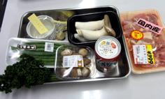 皿に盛り、インゲンを飾り、パセリを散らす。型抜きしたご飯を添える。完成! |