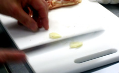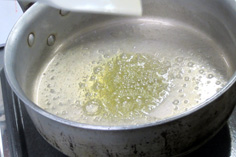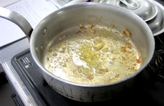 オリーブオイル20ccとニンニクを火にかけ、香りを出す |