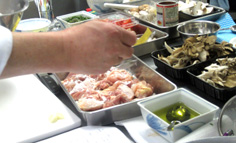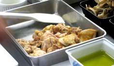 材料 5人分 鶏モモ肉 2枚 エリンギ 1パック マッシュルーム 10個 インゲン 10本 パセリのみじん切り 適宜 ニン二ク 1片 小麦粉 適宜 白ワイン 35cc カゴメ(基本のトマトソースという商品名) 1缶(295g) オリーブオイル 20cc 無塩バター 6g オレガノ(ドライ) 少々 |