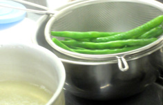 スジを取ったインゲンを3分ほど塩少々を入れて茹で |