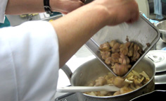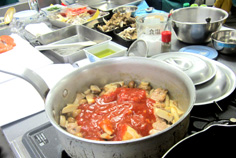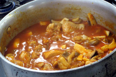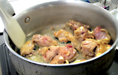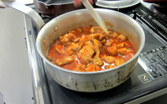 途中、アクを取り、ソースが煮詰まってきたら味を整える |