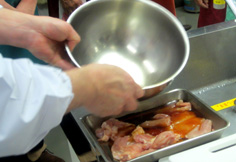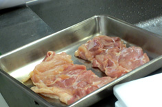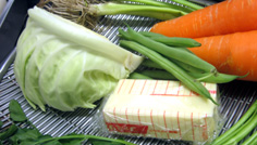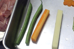 鶏もも 1枚 ニンジン 1本 インゲン 6本 プロセスチーズ(7cm×1cm) 6本 キャベツ 適宜 ※鶏下味 濃い口醤油・ミリン・酒 各40cc
