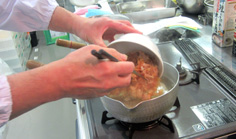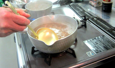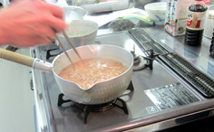 沸騰したら火を止め、少し温度が下がるまで待ち、削り節を加える |