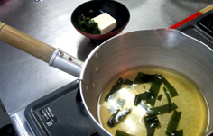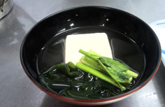 材料 4人分 絹豆腐 1丁 ワカメ 適宜 セリ 適宜 吸い地用に薄口醤油を用意 ※出汁用 出汁コンブ 30cm 削り節 50g |