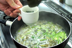 沸いたら塩、コショウ、酒で味を調え、バターをプラス