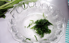 大葉は刻んで、さっと水にさらして絞る |