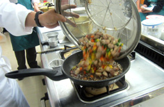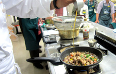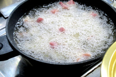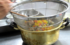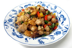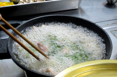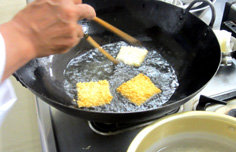 肉は2cm角に切る 塩・コショウ 片栗粉を振る 全体に馴染ませる。 合わせ調味料を作っておく ニン二クは微塵切り、唐辛子は輪切り 生シイタケ、ニンニクの芽、パプリカは1cm角。それぞれ分けておく おこげを揚げる 両面色よく揚げて ザルに取り出しておく 下味をつけておいた肉を揚げる ニン二クの芽を一緒に 最後に生シイタケ ザルに取り、油をきる パプリカは軽く炒めて ザルに一緒にしておく 油少々で、ニンニクと唐辛子を炒め、香りが出たら 合わせ調味料を加えて、沸かす 水溶き片栗粉を3回位に分けて入れ、トロミを付ける このような状態に ザルの具を加え、混ぜる ゴマ油をたらし 最後におこげを混ぜる 完成! 前のページへ 次のページへ