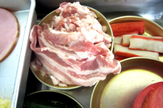 豚バラ肉 120g ※肉用味付け(テンメンジャン・ショウユ 各小さじ1) |