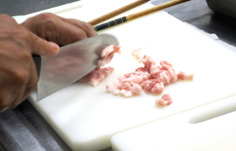 豚バラ肉を切る |