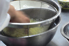 ザルに取り、水で流して、ぬめりを取る |