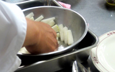 大根に塩少々を振り、10分ほど置いておく。途中で一度混ぜて揉む |