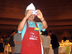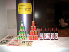 | 取材中の編集長 | 飲み物コーナー | 切るのは大変だった〜 |
