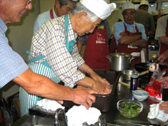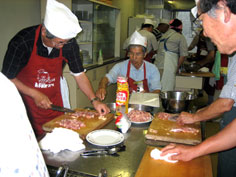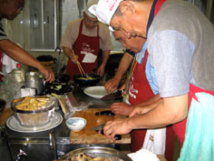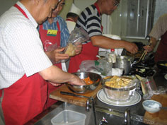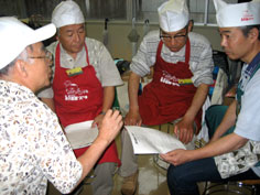 | ちょっと小さくして・・司令官は座って | シュウマイの具は良く練るのがコツ | 設営OK・・部長の見回り |