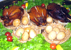 | 鶏の茸詰めサッパリ蒸し | ローストビーフ | スモークチキン&スモークエッグ |