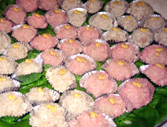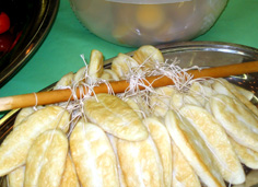 | 開口笑 | きゅうりのラー油漬け | もち米入り蒸し蓮根 |