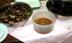 | 鮭のカブラ蒸し | こんにゃくのピリカラ串刺し | もち米の肉団子 |