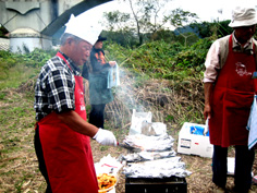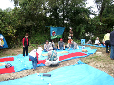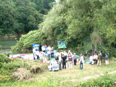 | 大橋の手前から河原に | 会の旗は目立つね | 今年はここにしよう | ||||||