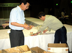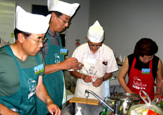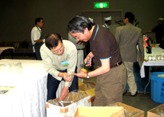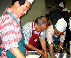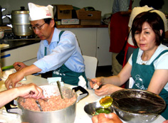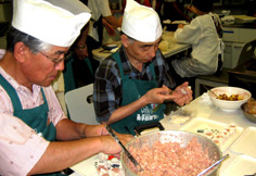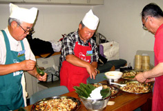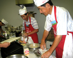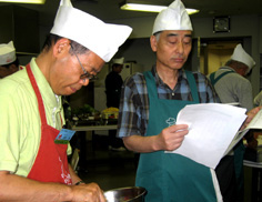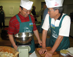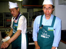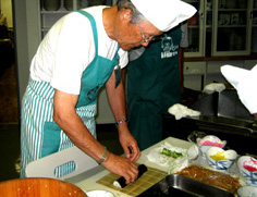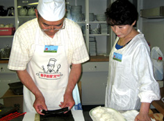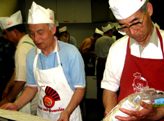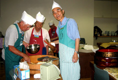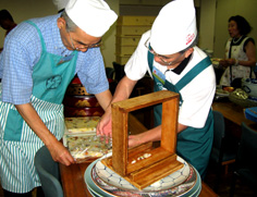 | これで良かった?そうそう・・・ | 押し寿司は力がいるね〜 | チーフ、こんなもんでしょうか? | ||