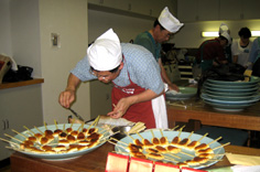 | このピザの生地は大丈夫かな? | どんどん指図して〜 | 飾り寿司は大変 | ||