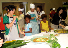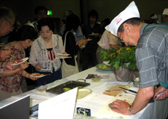 | 上手いですよ! | 左は「重箱」さん。いつも有難う | 男厨会のご指南役、斉藤先生ご夫妻 | ||