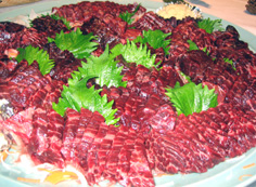 | 里芋の白煮 | ニシンの昆布巻き | 鯨の刺身 | ||||