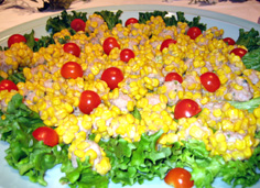 | 刺身の盛り合わせ | コーンの小菊蒸し | 笹かまとほうれん草の和え物 | ||||