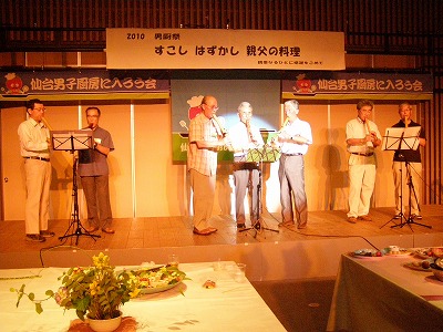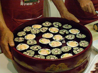 仙台男厨会恒例の「男厨祭り」が7月4日エルパーク仙台ギャリーホールで開催された。今年のテーマは「少しはずかし親父の料理」であったが、自慢の親父料理が会 いっぱいに並びました。