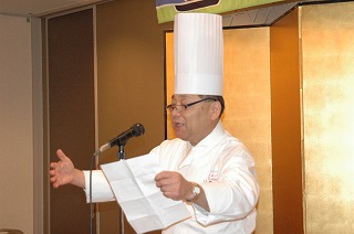| 数々の料理の説明をする中村総料理長 | 羽田中国料理長のご挨拶 |