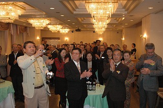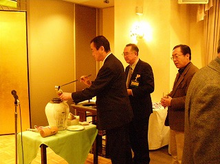 | 年男・氏家会員の紹興酒鏡開き | 来場した会員 |