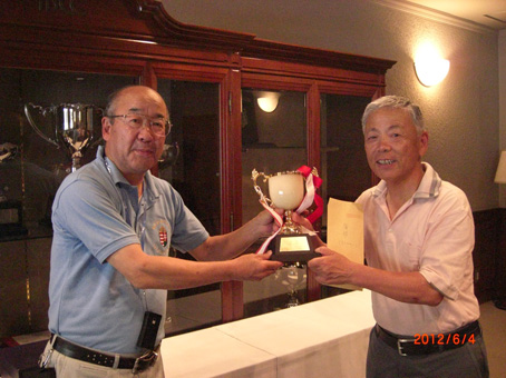 | 2012年春季オープン 優勝者:大堀英俊さん | 男厨会30周年記念コンペ:優勝者 岡崎久雄さん |
