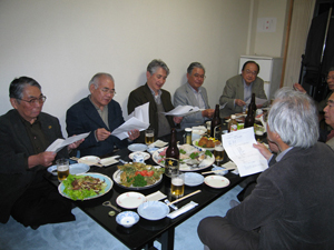 月例会後の懇親会は会員の経営する仙台浅草「風林火山」で開催するのが、最近の定番です。 21.4囲碁同好会の総会の模様 みなさん、真剣な表情。 内心は乾杯はまだかな〜。 |